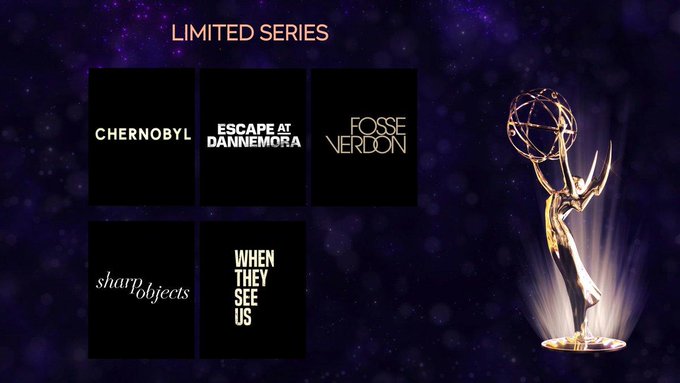 The nominees for Outstanding Limited Series are Chernobyl, Escape at Dannemora, Fosse/Verdon, Sharp Objects, and When They See Us.Four of the five nominees depict failures at some level of government, ranging from the catastrope of "Chernobyl" through the miscarriage of justice in "When They See Us" to the incompetence in "Escape at Dannemora" and "Sharp Objects," while the fifth, "Fosse/Verdon," is about show business. The most nominated with 19 nominations as well as the most winning so far with seven Emmy Awards is "Chernobyl," the fictionalized story of the meltdown of the nuclear reactor, with 19 nominations. "Fosse/Verdon" is the next most nominated with 17 nominations and the second most winning with three statuettes, followed by "When They See Us" with 16 nominations and one trophy. "Escape at Dannemora" has twelve nominations while "Sharp Objects" has eight nominations; neither has any wins so far.