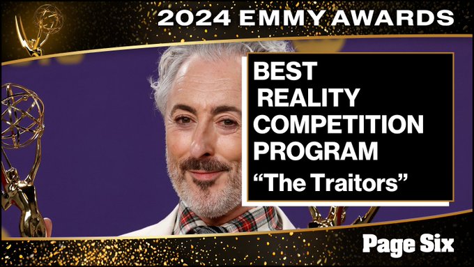 The Team from The Traitors accepts the Emmy for Outstanding Reality Competition Program at the 76th Emmy Awards.Congratulations to Cumming and the rest of The Traitors team!