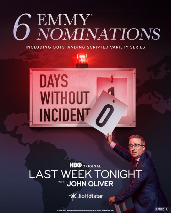 Desi Lydic isn't the only comedian having fun with the Epstein Files. I expect to embed more on Thursday when I cover the Outstanding Talk Series nominees. In the meantime, follow over the jump for Last Week Tonight with John Oliver's six Emmy nominations at the Primetime Emmy Awards and Creative Arts Emmy Awards.