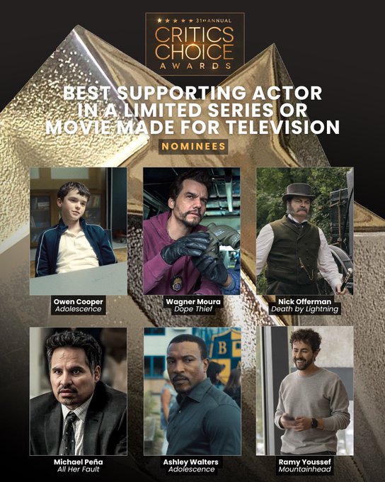 BEST SUPPORTING ACTOR IN A LIMITED SERIES OR MOVIE MADE FOR TELEVISIONEmmy winner Owen Cooper is a prohibitive favorite as the choice of every expert and editor plus 96.0% of users.