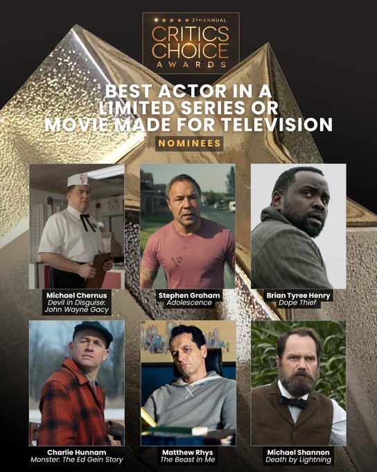 “Adolescence” leads this year’s television nominees with six nominations including a nod for Best Limited Series. The cast was recognized across multiple categories, with Stephen Graham nominated for Best Actor in a Limited Series or Movie Made for Television. Castmates Owen Cooper and Ashley Walters each received nods for Best Supporting Actor in a Limited Series or Movie Made for Television, while Erin Doherty and Christine Tremarco are both up for Best Supporting Actress in a Limited Series or Movie Made for Television.I'm not surprised, since Adolescence swept its categories at the Emmy Awards while The Penguin is not eligible. Let's look at Adolescence's fellow nominees for Best Limited Series.